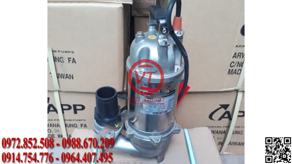 - Máy bơm nước chạy điện APP SB-05 chuyên dùng để hút chất thải, bùn, khai thác nước ngầm, bể lắng, nước mặn, hầm mỏ, bơm nước mặn, axit loãng.
