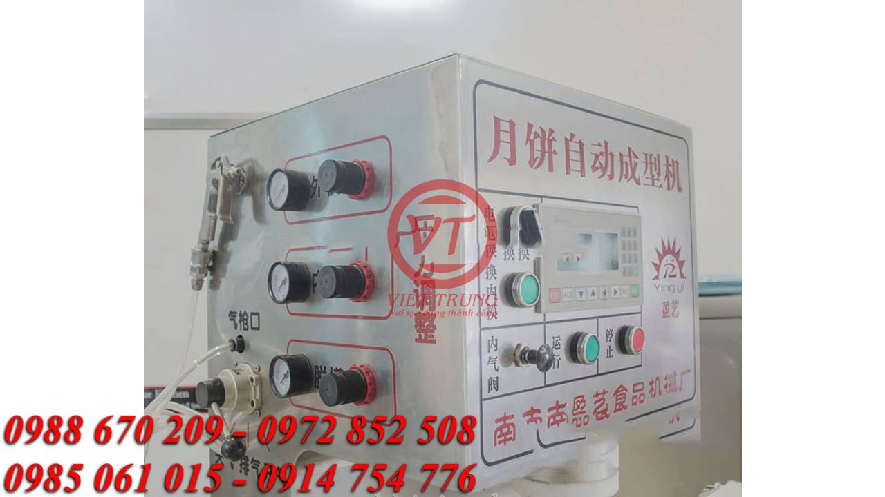 + Bảng điều khiển máy dập khuôn bánh trung thu gồm 3 thành phần chính. Đó là công tắc điều khiển cơ, bảng điều khiển điện tử và công tắc nén khí. Cụ thể như sau: