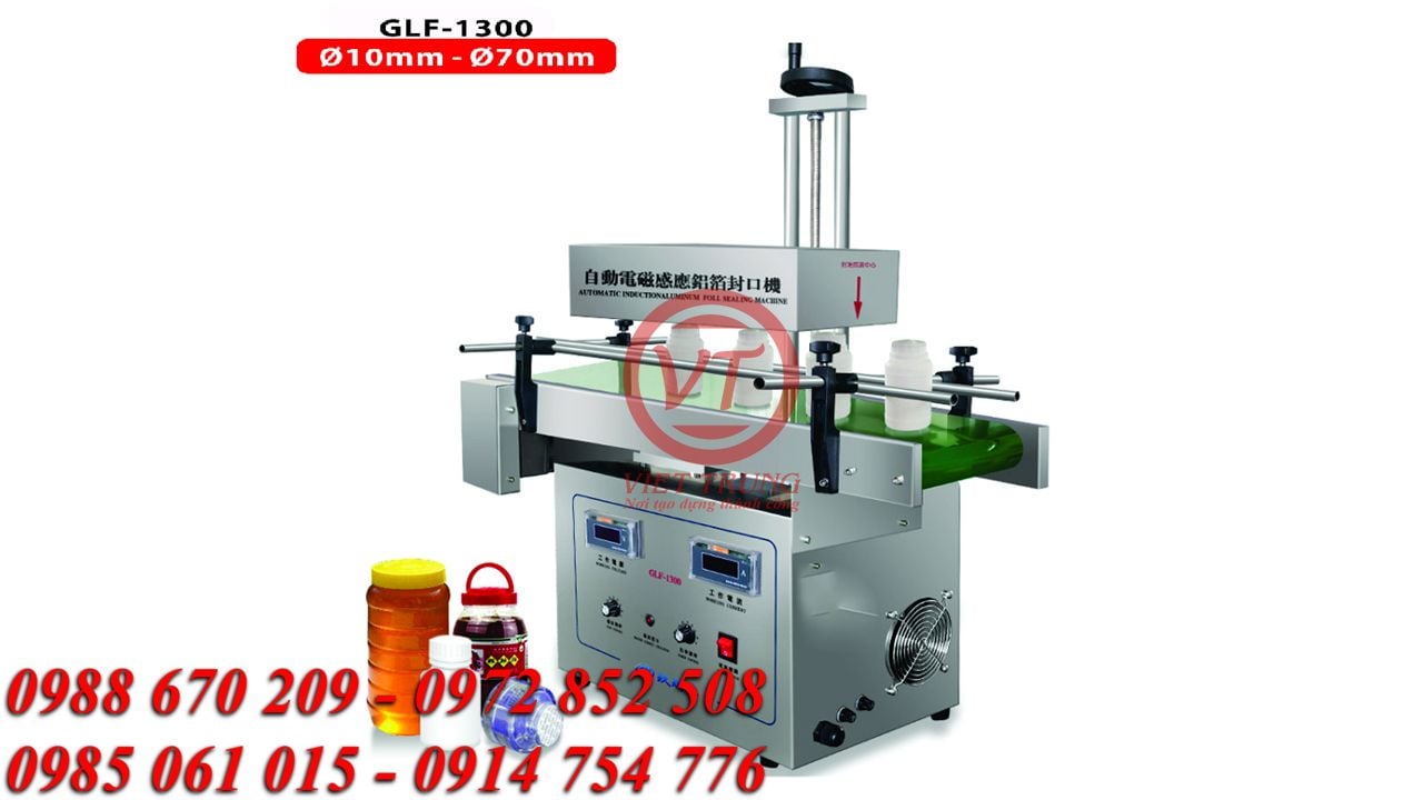 Máy Seal Màng Nhôm Tự Động GLF-1300 dùng để dán miệng chai, hũ nhựa hay thùng lớn với đường kính của sản phẩm lên tới 120 mm. Là thiết bị không thể thiếu trong ngành dược phẩm, ngành hóa chất, ngành thực phẩm. Dán màng seal giúp cho sản phẩm được bảo quản một cách tốt hơn, an toàn hơn, tránh được quá trình oxy hóa, thời tiết ẩm ướt từ môi trường…